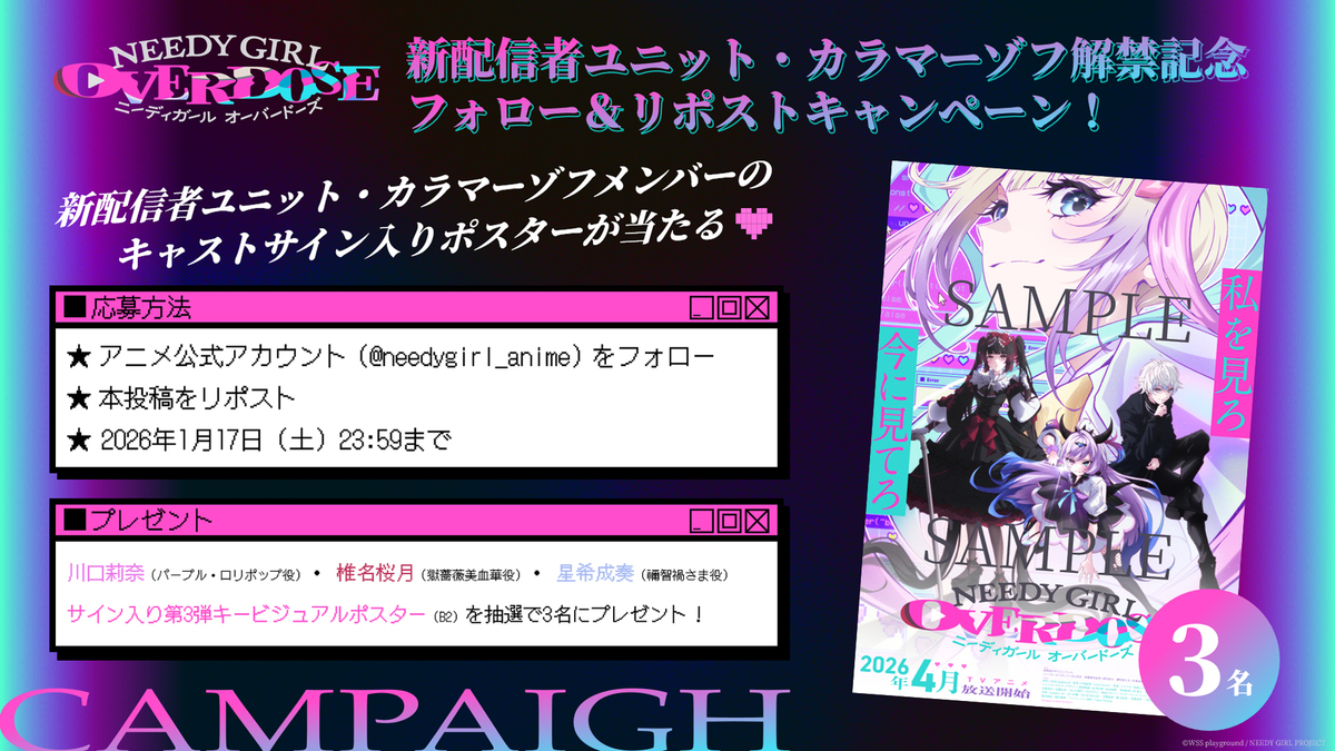 アニメ『NEEDY GIRL OVERDOSE』第3弾ビジュアル解禁映像|26年4月放送!劇場先行版3月6日(金)よりテアトル新宿&梅田にて公開!