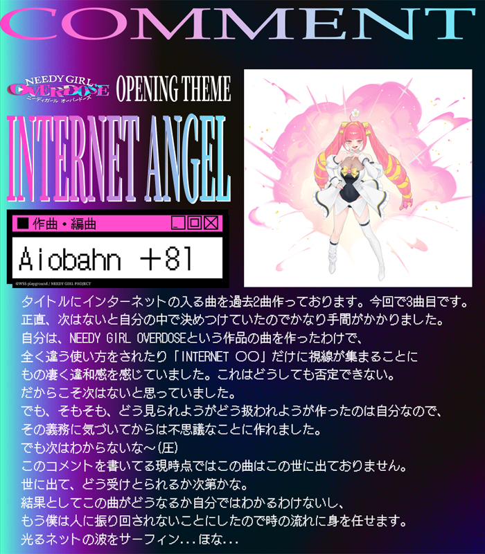 NEEDY GIRL OVERDOSE/ オープニングテーマはAiobahn +81による「INTERNET ANGEL」に決定! コメントも…