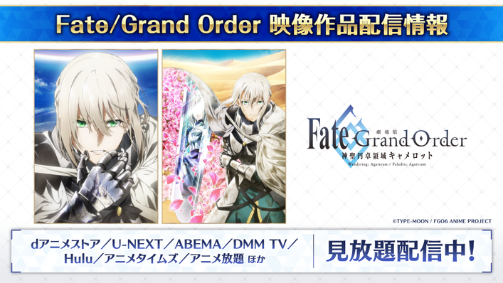 Fate/Grand Order -神聖円卓領域キャメロット- 前編 Wandering; Agateram/ 【『FGO 第2部 終章』開幕間近】各種プラットフォームにて期間限定見放題配信が開始!