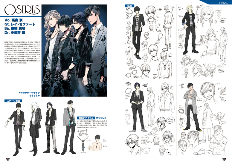 各バンドのページでは、イラストレーターさんによる設定画やデザイン案のイラストを掲載。