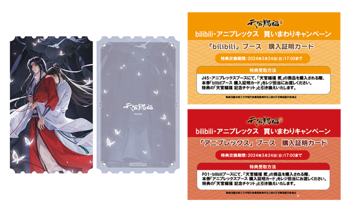 AnimeJapan2024(2024年3月23日・24日) P01-bilibiliブース/J45-アニプレックスブースにて天官賜福の商品を購入いただいた方に特別イラストを使用した「記念チケット」をプレゼント!