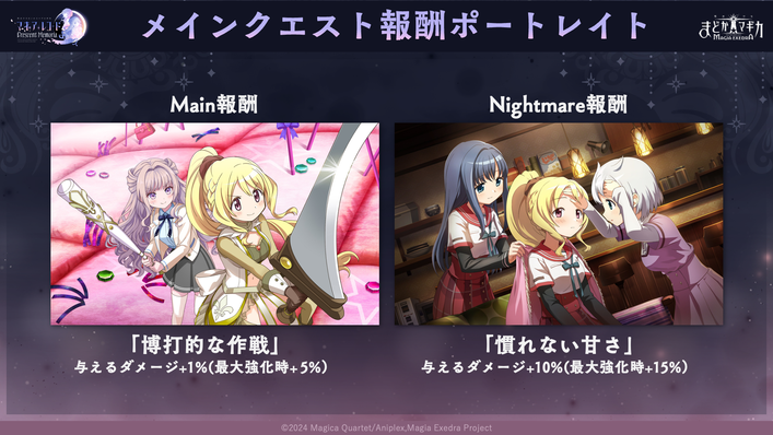 イベント参加条件:メインクエスト『魔法少女まどか☆マギカ』Main「4個目の記憶の窓【お菓子の魔女】BOSS」をクリアで解放