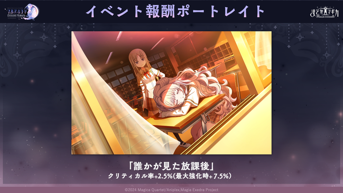 イベントクリアでイベントメダルを集めると、ポートレイト「誰かが見た放課後」やマギカストーン等を交換可能です。