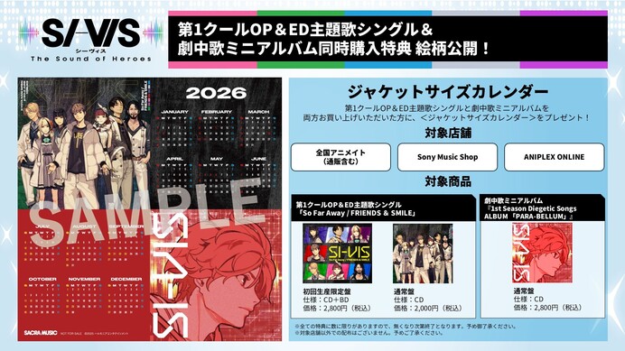 第1クールOP&ED主題歌シングルと劇中歌ミニアルバムを両方お買い上げいただいた方に、<ジャケットサイズカレンダー>をプレゼント!