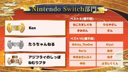 最終戦では「捌き」と「交代コンボ」を得意とするたうちゃんねる選手に対してKen選手が最後まで積極的に攻め切り、見事”Nintendo Switch部門”優勝の座を掴みました。