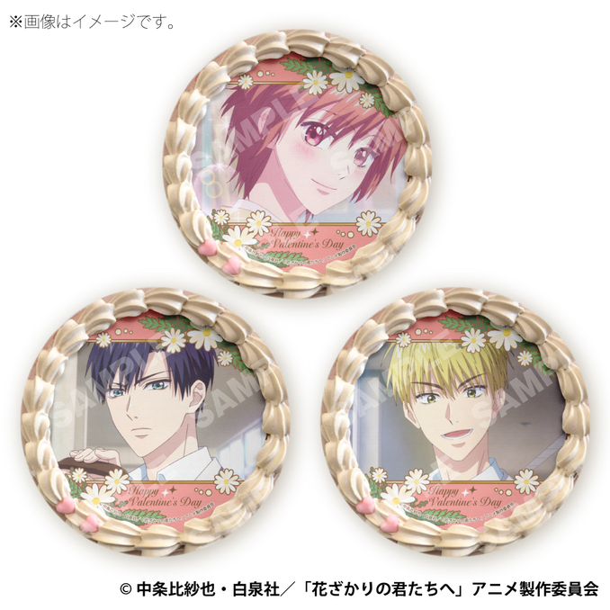花ざかりの君たちへ 公式サイト バレンタインプリケーキ Jan 27, 2026 バレンタイン仕様のプリントケーキです。購入特典として商品と同じ絵柄の缶バッジが1点ついてきます。【価 格】5,130円(税込)【発売日】2026年1月27日【サイズ】直径15cm×高さ7cm【仕 様】ケーキのクリームは「ホイップ」もしくは「チョコ」から、フルーツは「イチゴ」もしくは「黄桃」から選択可能【種類数】3【発売元】株式会社栄通(https://priroll.jp/shopbrand/ct15939/) Back to top Share