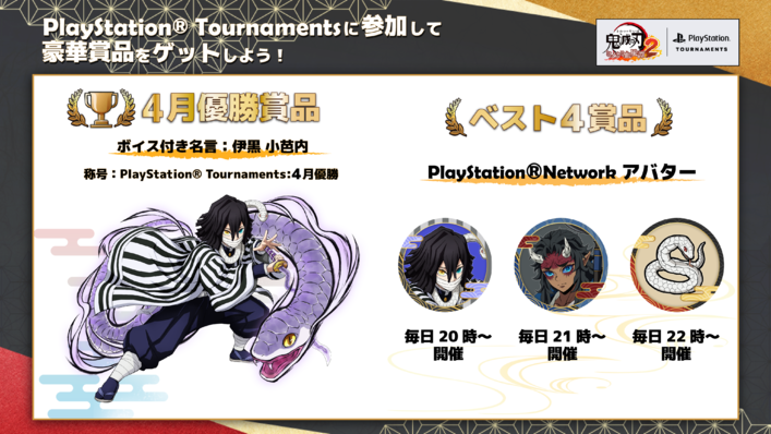 PS5版にて参加ができる「PlayStation® Tournaments」につきまして、4月は下記内容にて開催をいたします!