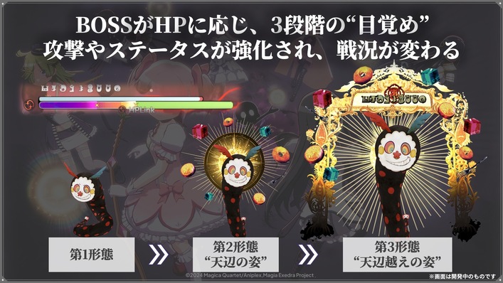 エクセドラクライシスは、BOSSがHPに応じて目覚め、3段階変化していきます。攻撃やステータスが強化され、戦況が変わっていくのも特徴となっております。