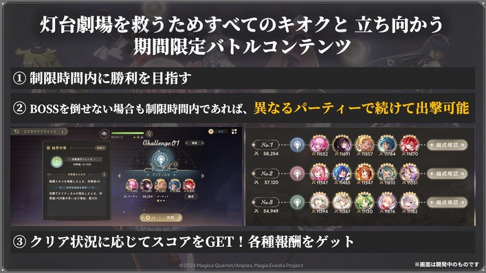 2026年4月1日(水)12時より、灯台劇場の新バトルコンテンツ「エクセドラクライシス」を実装し、エクセドラクライシス Season 1を開始いたしました。エクセドラクライシスは、「灯台劇場を救うため、すべてのキオクと立ち向かう」期間限定バトルコンテンツとなっております。