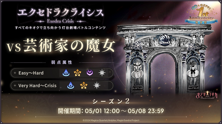 2026年5月1日(金)12時より、エクセドラクライシス シーズン2を開催します。エクセドラクライシスは、「灯台劇場を救うため、すべてのキオクと立ち向かう」期間限定バトルコンテンツとなっております。